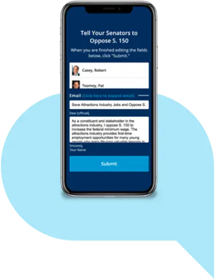 Drive massive multi-channel engagement with “One Click.” No two, three, or four step processes like other tools. Instant submission of emails, faxes, and socials posts to elected officials in one easy step.