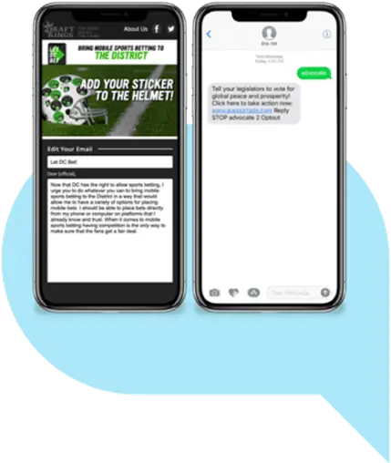 Send your advocates mass SMS or MMS text message blasts and/or create your own mobile keywords that your advocates can text into using a dedicated shortcode.