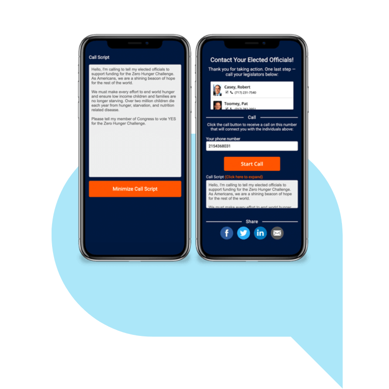 We have the tools you’d expect (email, analytics, social media, texting, and patch-through calling), but we go the extra mile. From prefilled webforms that increase your advocate conversion rates by over 20%, to enabling your advocates to record and deliver personalized video messages to lawmakers, you’ll have industry-leading capabilities that are impactful and easy to use.