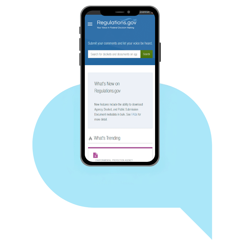 Integrated with Regulations.gov, have your advocates submit comments to regulations with open comment periods. Fully tracked and reportable.